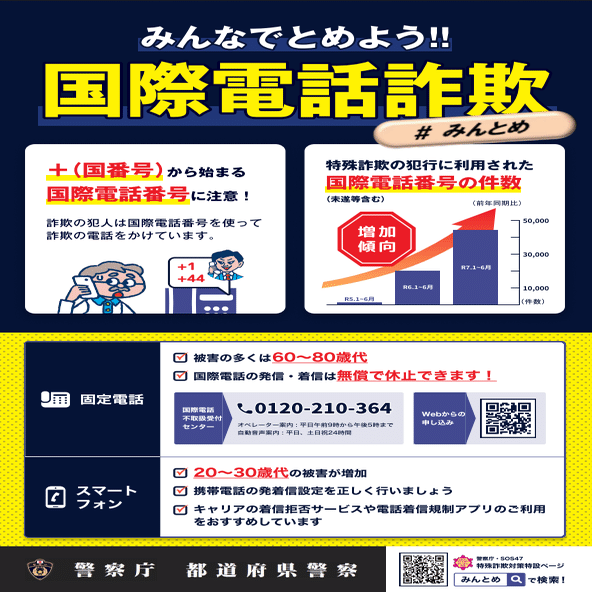 みんなでとめよう!!国際電話詐欺 #みんとめ | 警察庁・SOS47特殊詐欺対策ページ